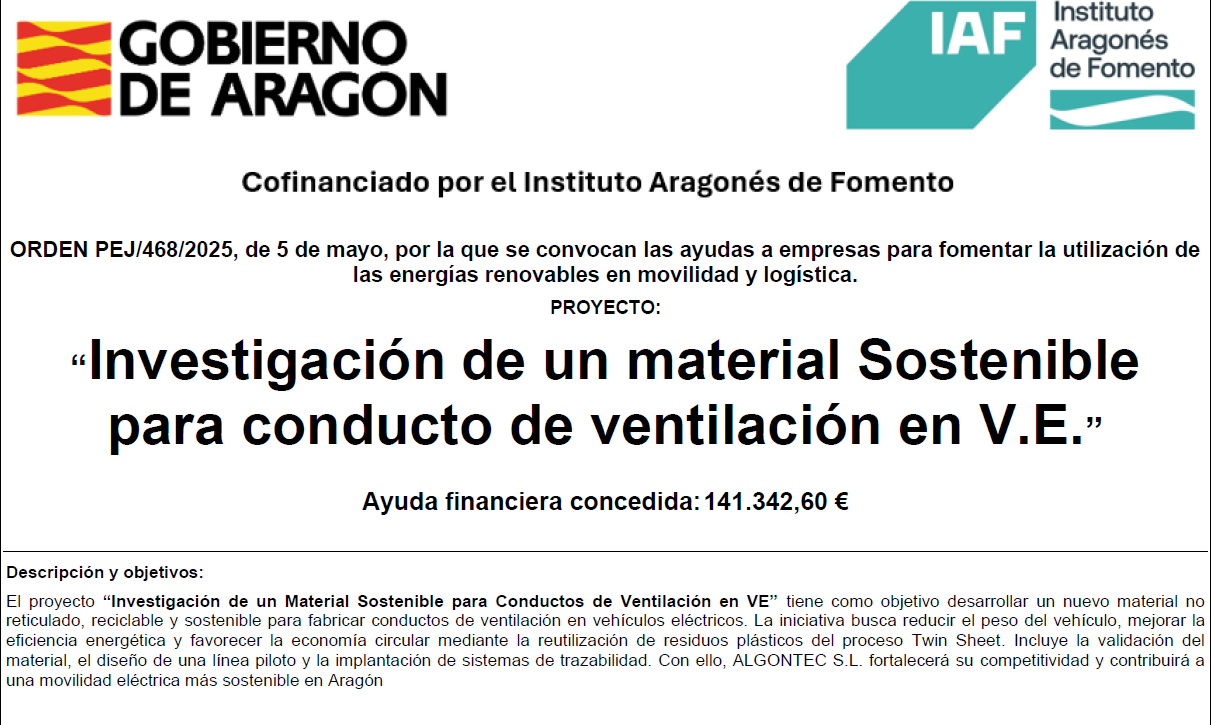 "Investigación de un Material Sostenible para Conductos de Ventilación en VE por ALGONTEC"